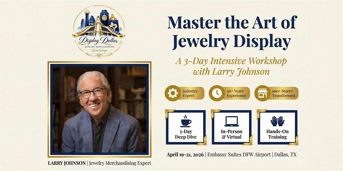 Transform your jewelry displays into revenue-generating showcases at Display Dallas. Join Larry Johnson and industry experts for three intensive days of proven merchandising strategies that drive foot traffic and increase sales. Learn the psychology of display, master lighting techniques, and discover how top jewelers turn browsers into buyers. Walk away with actionable insights you can implement immediately to dominate your local market.