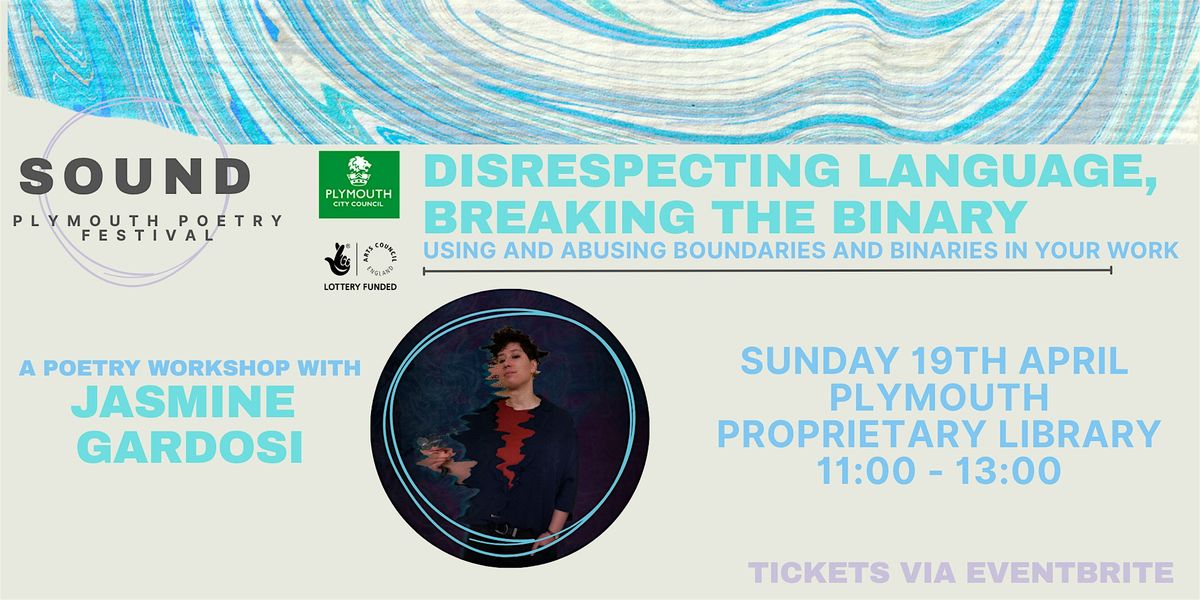In the aftermath of poetry/beatbox/Celtic Dubstep show Dancing To Music You Hate, join former Birmingham Poet Laureate and Honorary Doctor of Letters Jasmine Gardosi in a workshop inspired by its themes of gender identity and breaking binaries. We will discuss binaries in all their forms… Right/Wrong, Man/Woman, Them/Us, Good/Bad, Heaven/Hell… and how black and white thinking leads to segregation, silo-ing, and a culture of divide and rule. We will explore how polarities control us, how systems benefit, and how to break free through language. You will be empowered to disrespect, dismantle and blend these binaries in your poetry.