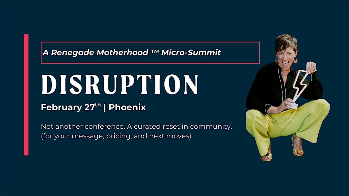 DISRUPTION by Renegade Motherhood™ is a curated, in-person micro summit for people building meaningful work — mom-forward and mom-friendly by design, and open to female-identifying leaders and allies who value depth, discernment, and real conversation.