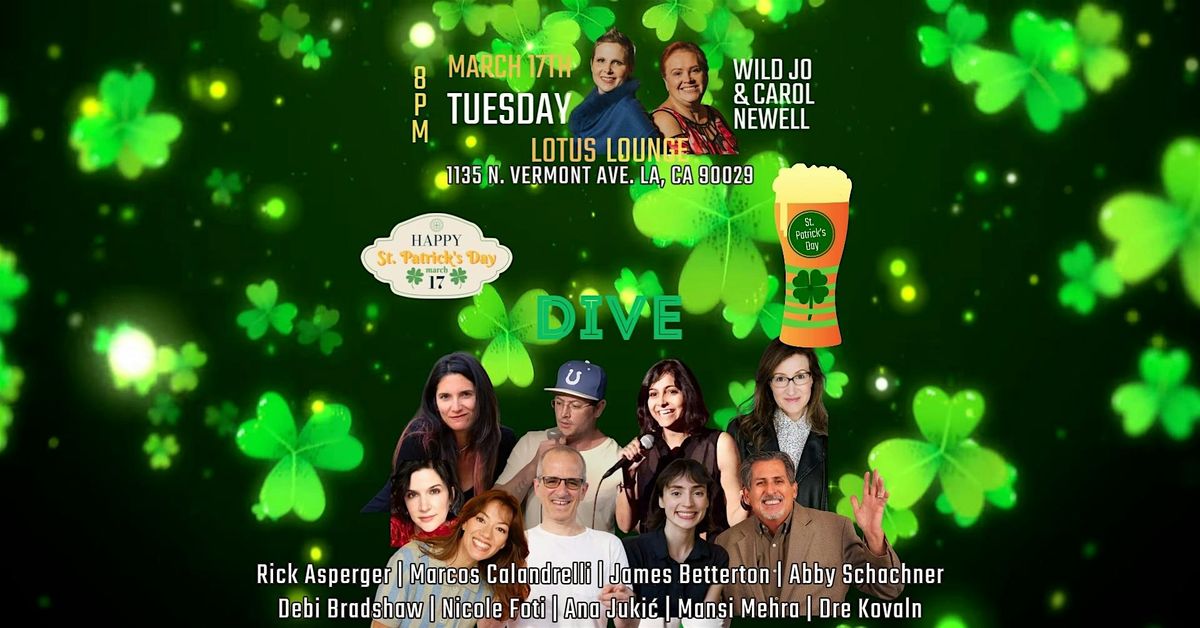 Check out LA's most outrageous and hilarious standup comics in a chill dive bar, Lotus Lounge, Tuesday March 17th at 8pm. It's St. Patrick's Day!