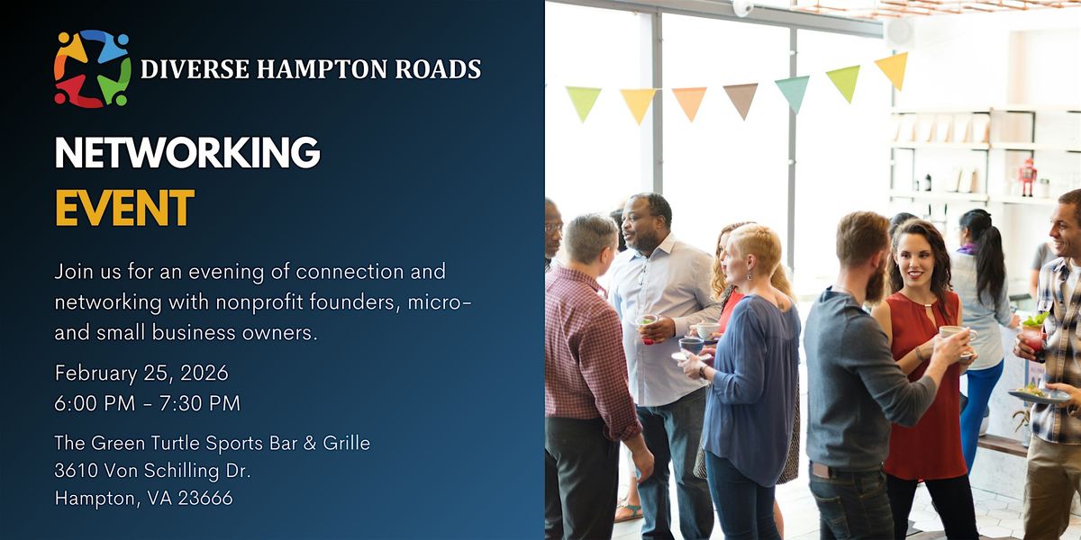 Join us for the Diverse Hampton Roads Networking Event (Peninsula) on February 25, 2026, at 6:00 PM at The Greene Turtle Sports Bar & Grille!