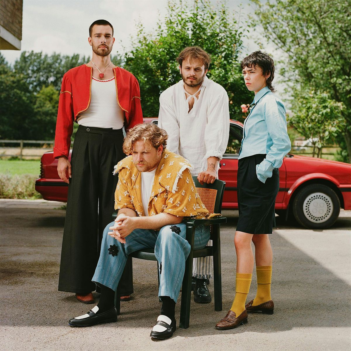 For those wondering, “Goldenhammer” is a fictional place based on a composite of the band’s associations with the East Midlands and something about childhood memories which informs their work generally – whether it’s through cultural output like Wallace and Gromit or radio plays like The Archers, or the Nottingham DIY scene that fostered them growing up. “We’re very inspired by the culture within the regions that we're from, and the eerie nostalgia, the line between fiction and reality,” says Tiger. In turn, there’s a welcoming surrealism to the album, reflecting a side of the post-industrial Midlands that doesn’t often come across in pop culture. “We really wanted to make sure that warmth was something people could feel, because that is such a big part of the Midlands,” says Adam. “It is hard and industrial, but it’s also endearing and sweet. You’ll have this big burly bloke with the strongest accent in the world, and when you speak to him he'll be talking about his dog or his three daughters that he loves with all his heart.”