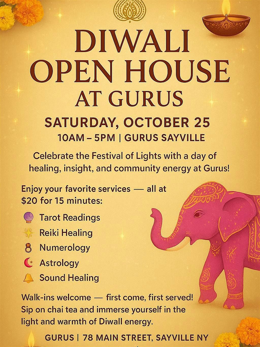 Join our Diwali Open House at Gurus Sayville 🌸