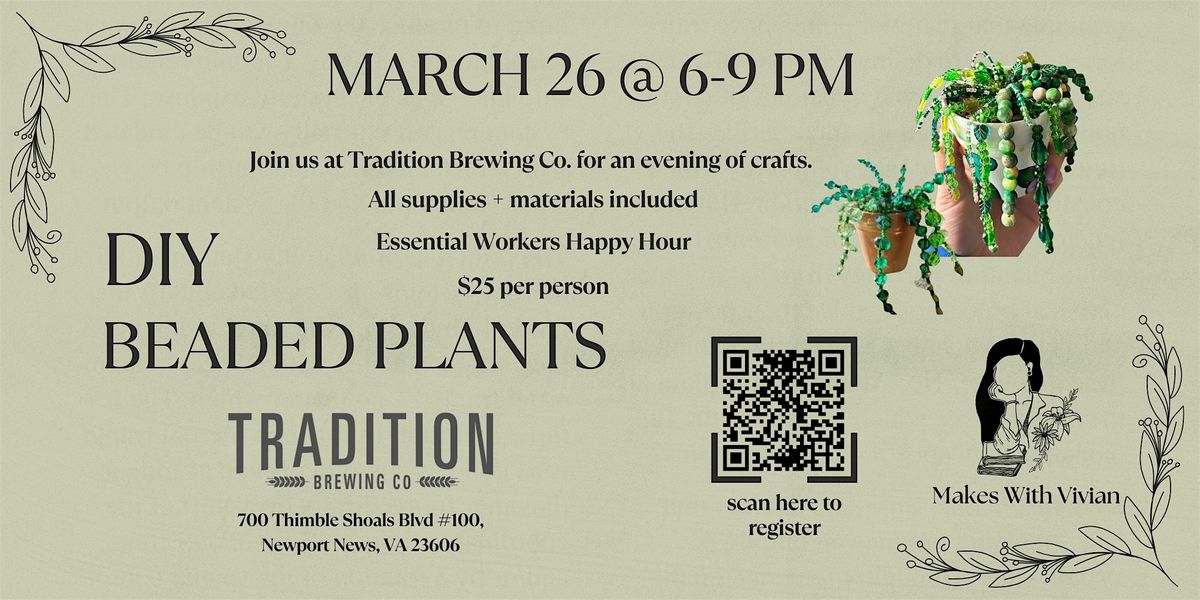 Don't miss out on this opportunity to create a unique beaded plant for yourself, or to gift one to a friend! Did I mention they’re pet-friendly and don’t need to be watered? Mark your calendars and we'll see you there!