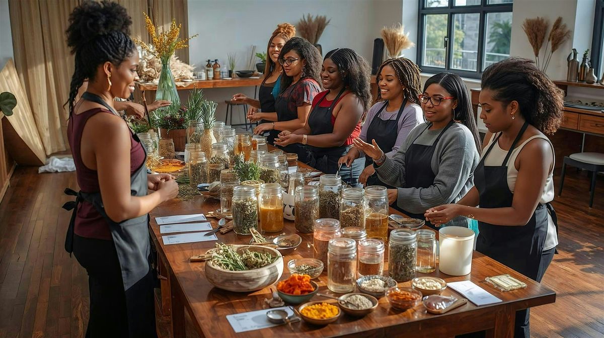 Release Your Inner Mixtress — this is your personal apothecary experience to prepare your skin for the cooler season. In this hands-on class led by Nicole Jennings, founder of Purgasm Shop, you’ll learn about skin-soothing botanicals and why exfoliation & hydration are your secret weapons against eczema, psoriasis, and dry skin. We'll sip wine (or tea), enjoy light bites, and vibe out to some soulful music as you create your own customized botanical body scrub and a custom-scented hydrating moisturizer for soft, supple skin just in time for fall and winter! Whether you’re a DIY skincare enthusiast or curious about natural remedies, this class is perfect for all levels.
