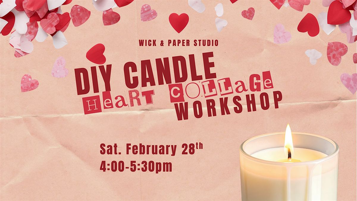 Welcome to the DIY CANDLE: Heart Collage Workshop happening at Wick & Paper Studio! You will have fun customizing and decorating heart-themed 10oz natural soy candles.No experience necessary, just bring your creativity and we'll provide all the materials.