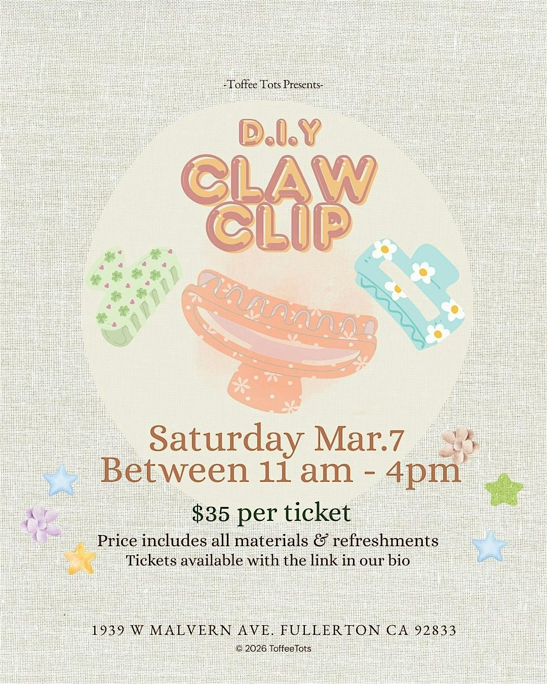 Join our DIY Claw Clip Workshop and design your own one-of-a-kind hair accessories 🦋🌼