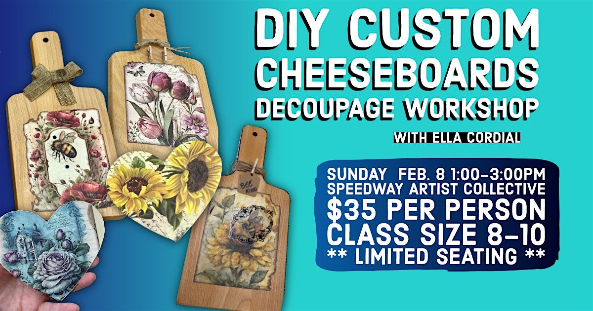 **stair access only. Create a beautiful 5” x 12” unique decoupage cheeseboard and some extras. Fun relaxing afternoon creating easy crafts.