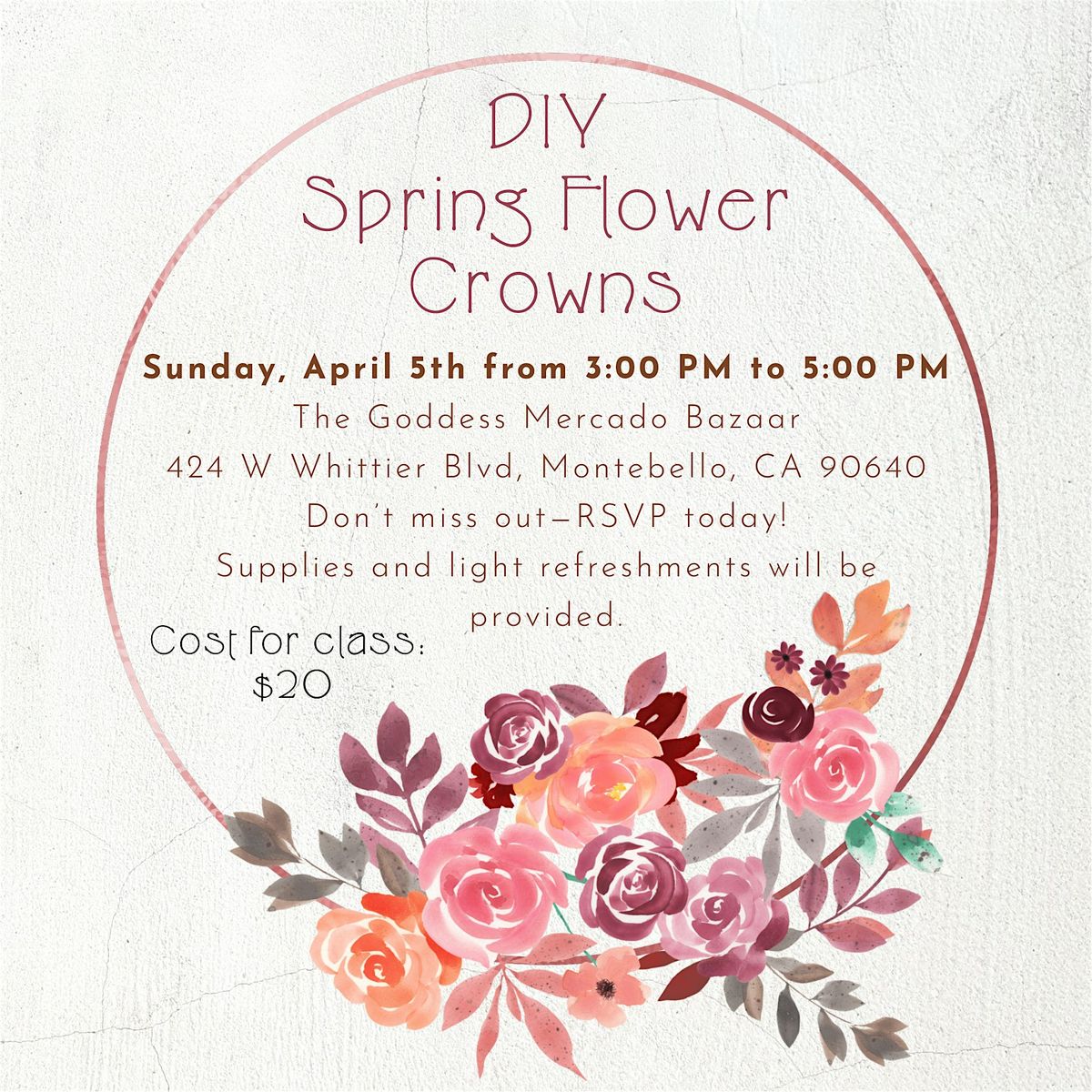 Join us for a fun hands-on session making your own spring flower crowns—perfect for fresh vibes and good times!About this Event