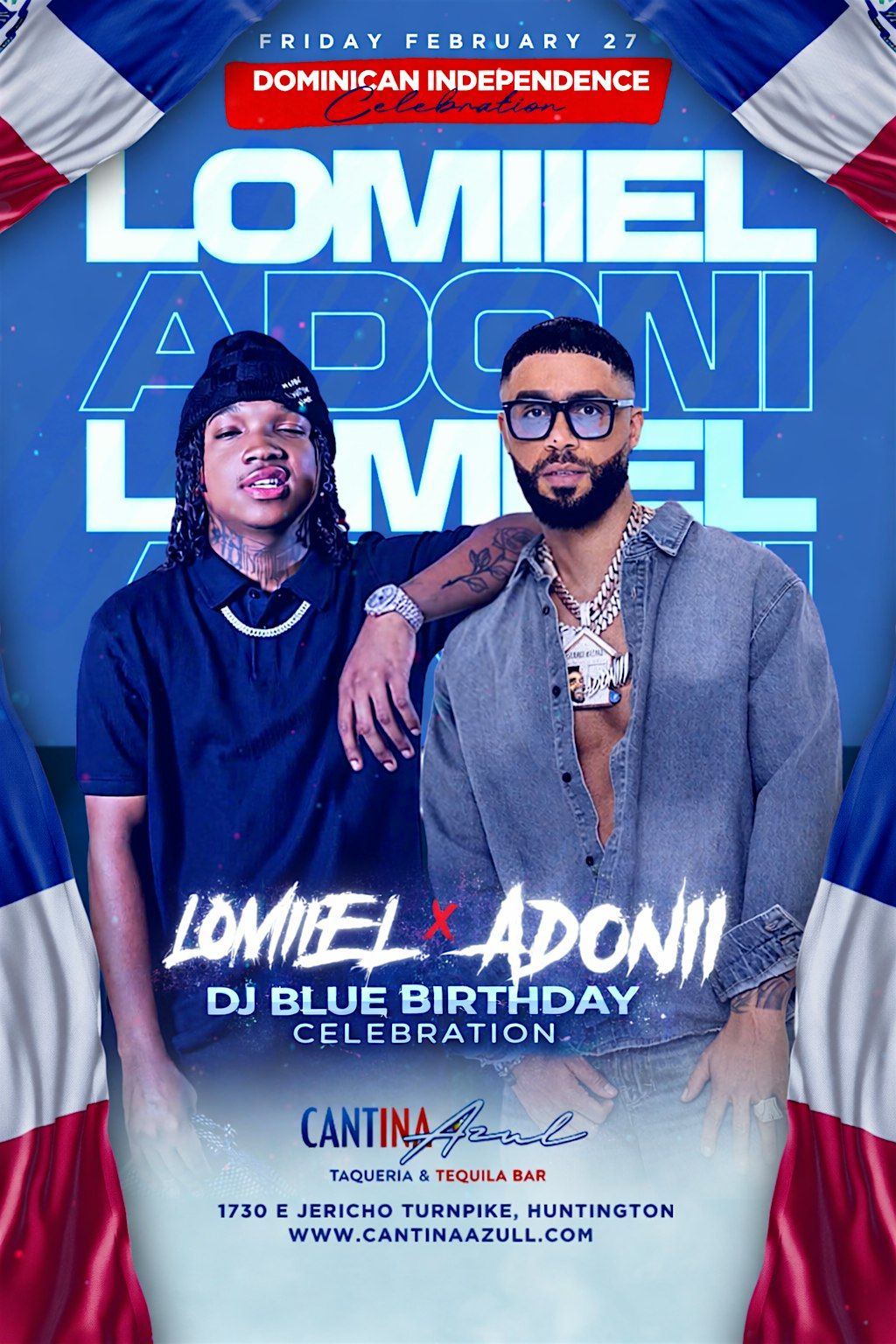 Get ready to dance all night long with Dj Adoni and Lomiiel at Cantina Azul - it's going to be a night to remember!