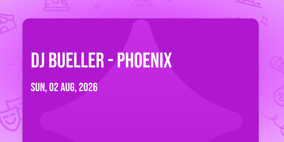 📍 Location: 30.4447, -84.2931✨ Enter a world of endless possibilities at DJ Bueller - Phoenix, where every moment tells a story! 🏛️ The stunning The Tennessee Strip in vibrant Tallahassee, FL transforms into a realm of wonder on August 16th, 2026 at 04:00 AM. 🌟 They have crafted an experience that goes beyond the ordinary, combining elements of surprise, delight, and pure entertainment. Every detail has been thoughtfully considered to ensure your journey with us is nothing short of extraordinary. 🎯 Join fellow adventure seekers and memory makers in this celebration of imagination and innovation. 🎊 Reserve your spot today and be part of something truly special!