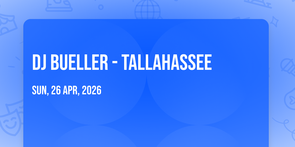 📍 Location: 30.4447, -84.2931🎉 Prepare to be amazed at DJ Bueller - Tallahassee, the most anticipated gathering of the season! 🌟 Set against the stunning backdrop of The Tennessee Strip in vibrant Tallahassee, FL, this event promises to redefine your expectations. 📅 Mark your calendars for July 26th, 2026 at 04:00 AM and get ready to immerse yourself in an atmosphere of wonder and excitement. ✨ From the moment you arrive, you'll be transported into a world where memories are made and stories come alive. They have crafted an experience that perfectly harmonizes entertainment, innovation, and community spirit. 🌈 Join us as we create moments that will be discussed for years!