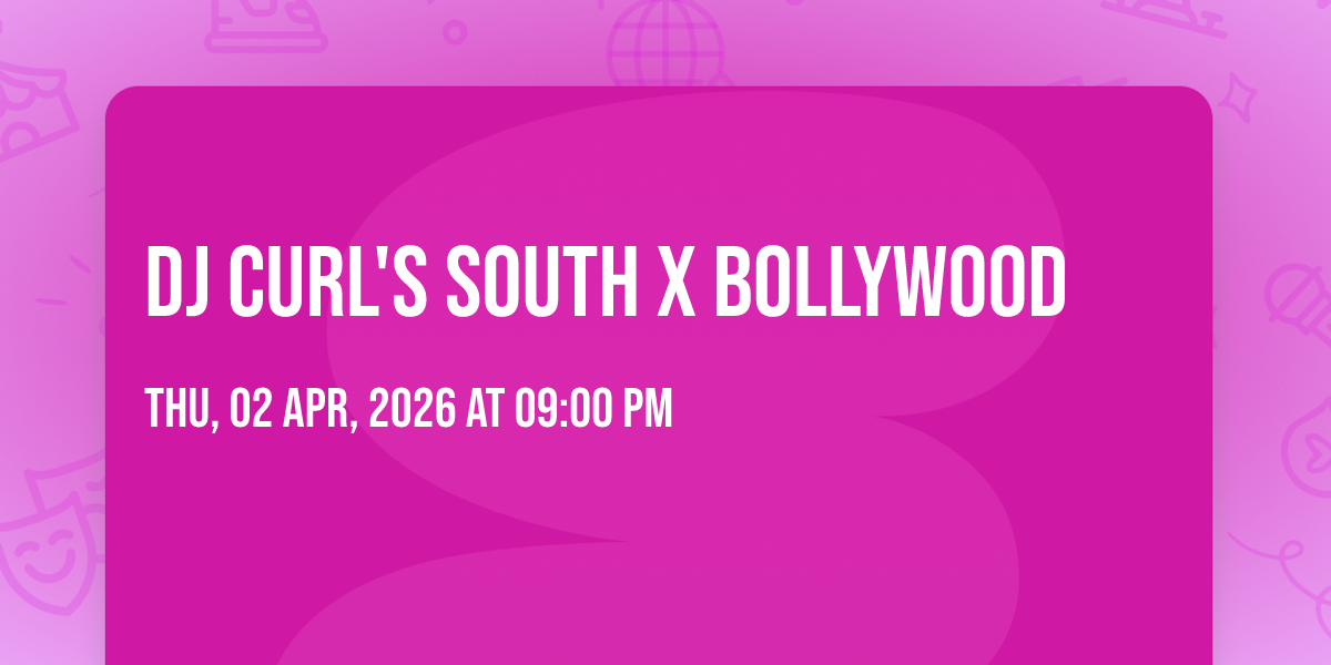 Get ready to dance the night away as DJ Curl spins a high-energy mix of Telugu, Tamil, Malyalam, Kannada and Bollywood chart-toppers, blending desi rhythms with club vibes to keep the dance floor alive all night. Whether you’re a fan of Tollywood beats, Kollywood bangers, or Bollywood anthems, this night is all about non-stop music, vibrant energy, and unforgettable party vibes.