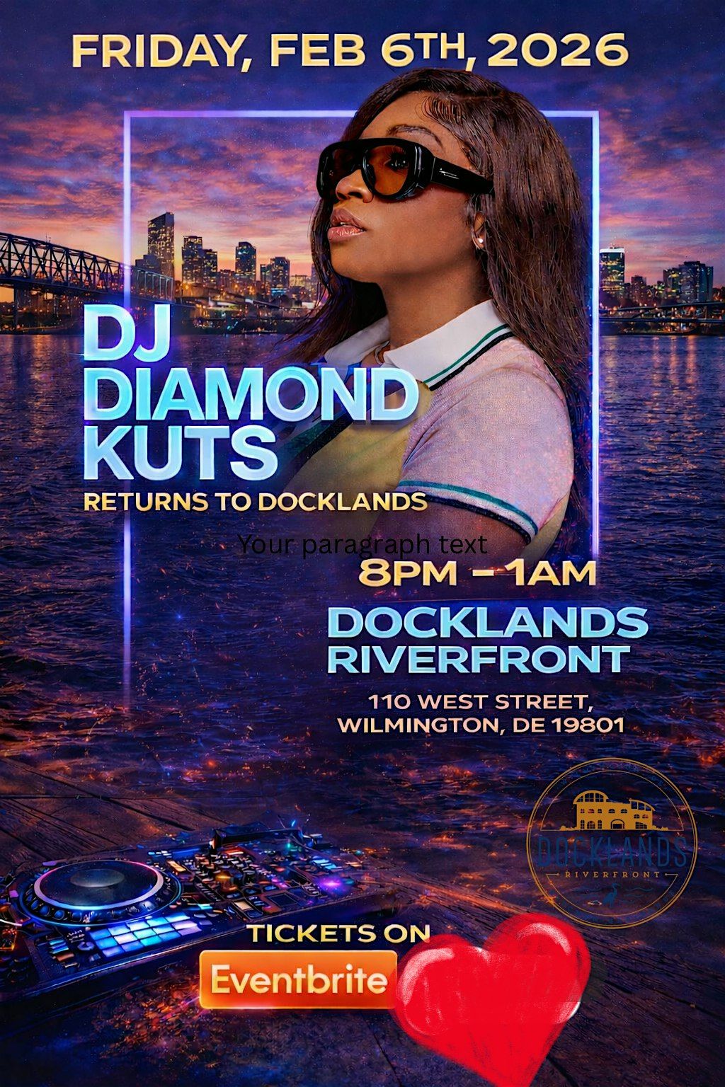 Welcome back DJ Diamond Kuts at Docklands Riverfront! Get ready for a night of non-stop beats and good vibes by the water. Join us at Docklands Riverfront for a party you won't forget. DJ Diamond Kuts will be spinning the hottest tracks all night long, so come ready to dance and have a great time. Don't miss out on this epic event - grab your friends and get ready to make some memories! Grab early bird tickets before they are gone!