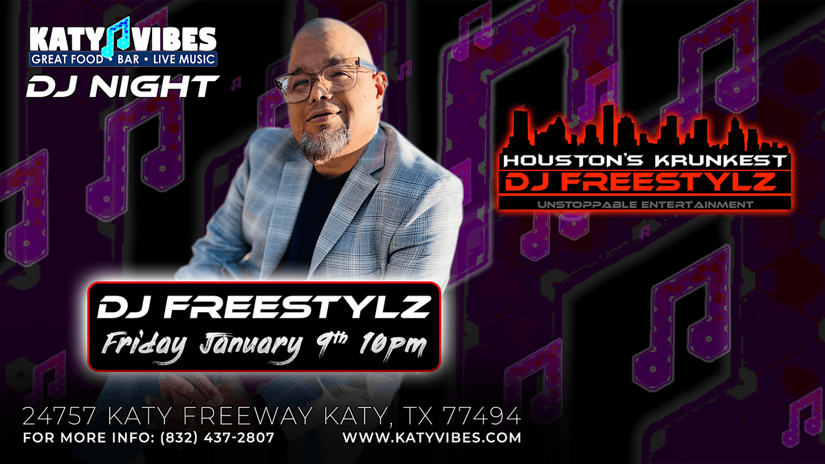 🔥 Friday, January 9 at 10 PM, DJ Night takes over Katy Vibes with Houston’s Krunkest DJ Freestylz tonight! 🎧
