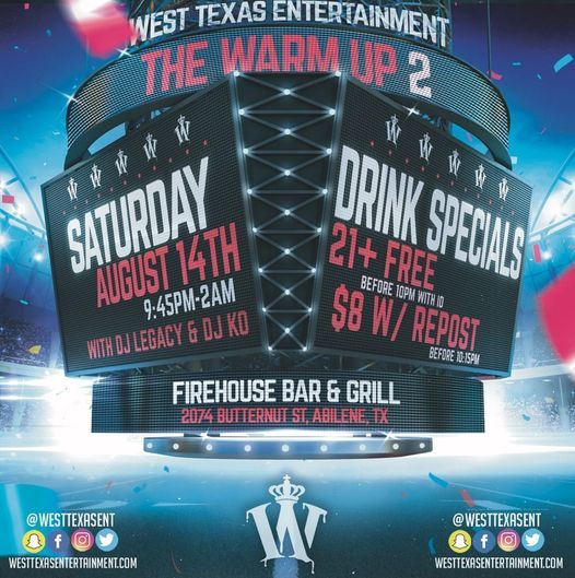 Firehouse Bar and Grill, 2074 butternut st, Abilene, TX 79602, United StatesEvent Location & Nearby Stays: