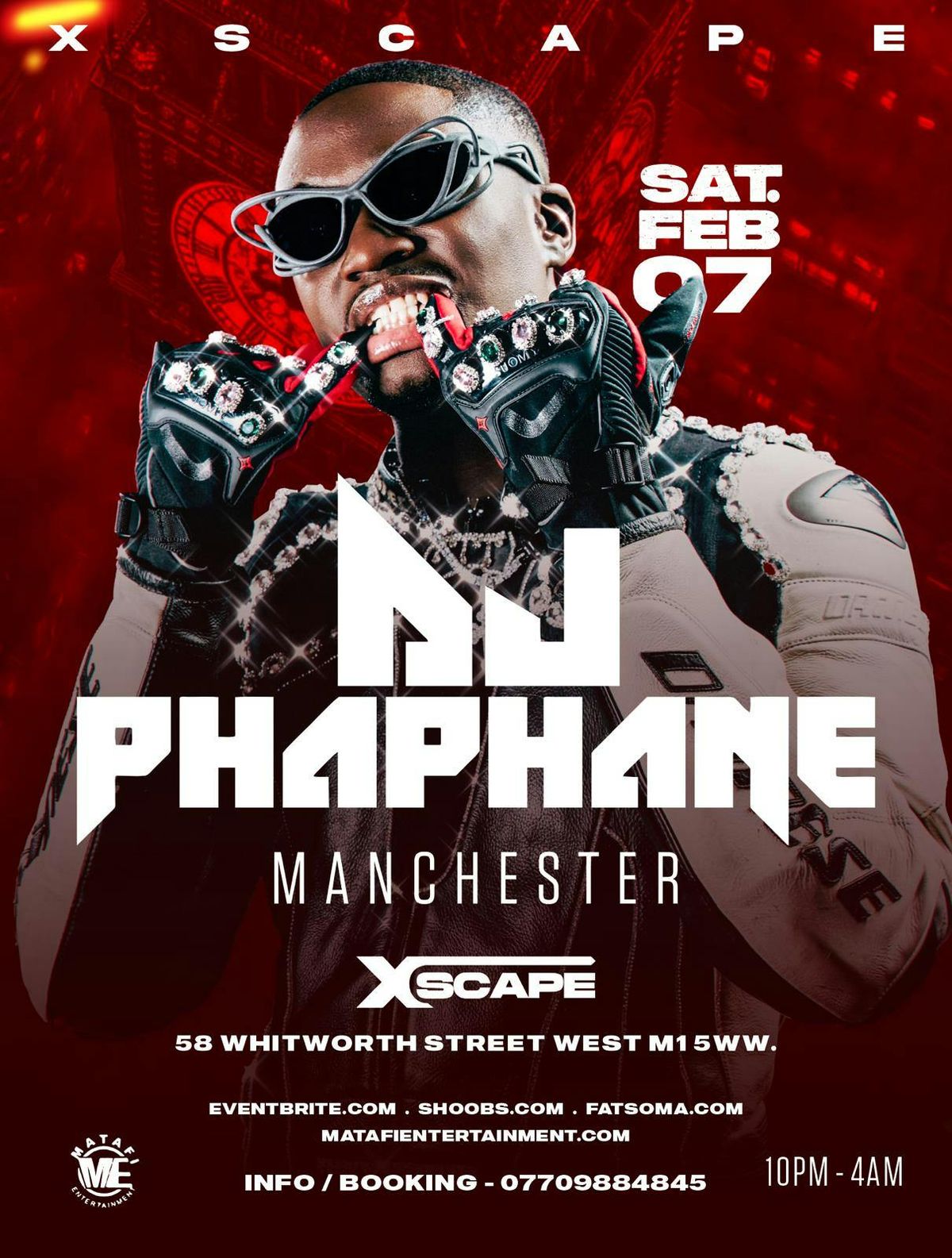 DJ PHAPHANE IN MANCHESTER is set to light up the city with an electrifying night of Afrobeats, HipHop, Amapiano, RnB, and Dancehall as one of the hottest DJs brings nonstop energy to Xscape Manchester.Taking place on Saturday 7th February 2026, 10pm – 4am, expect premium vibes, heavy rhythms, and an unforgettable party atmosphere at Xscape, 58 Whitworth Street West, M1 5WW.