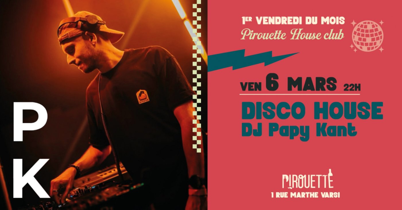 Chaque premier vendredi du mois, DJ Papy Kant débarque à Pirouette avec sa lumineuse sélection House, Disco house, Nu-disco...