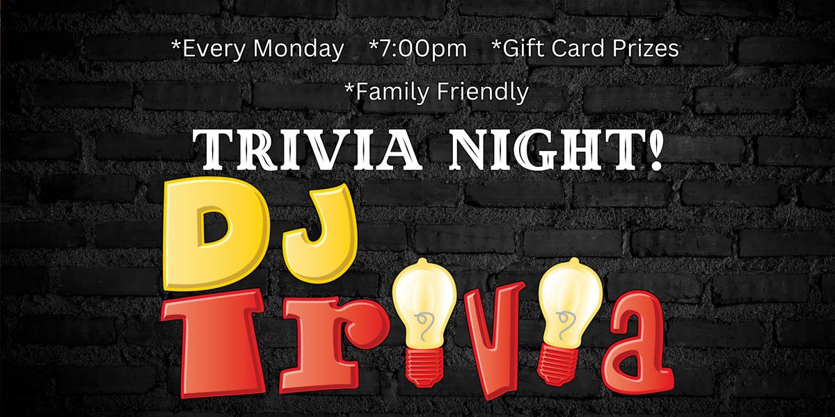 DJ Trivia is played every Monday at 7PM , is FREE TO PLAY and there are prizes for 1st, 2nd, and 3rd place teams!