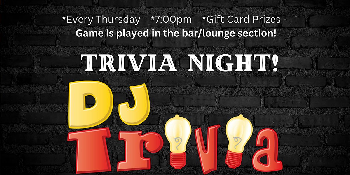 DJ Trivia is played every Thursday at 7PM , is FREE TO PLAY and there are prizes for 1st, 2nd, and 3rd place teams!