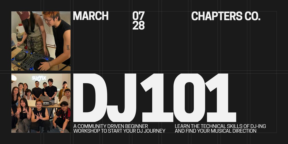 DJ101 is a beginner-friendly DJ workshop designed to give you insights on what do DJs actually do, not just turning knobs and dancing on stage. You'll get to build your musical identity as well as learning the technical basics of DJ-ing in one afternoon. The hands-on workshop is structured with the intention to be the starting point for your DJ-ing journey, providing you with direction and clarity.