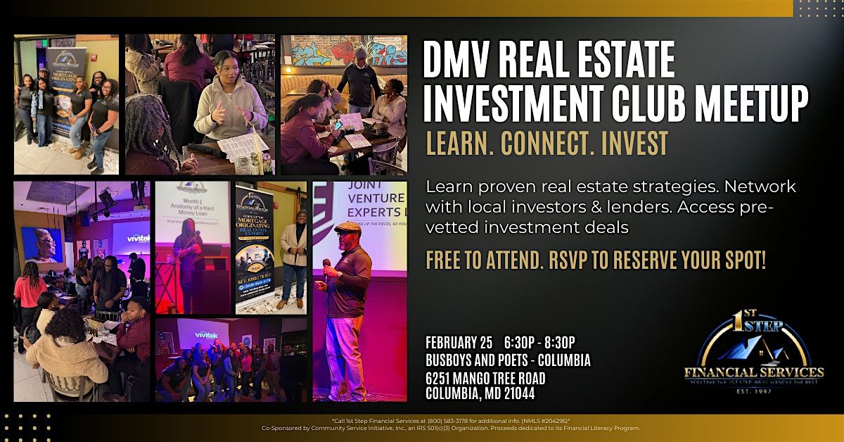 Join 1st Step Financial Services’ DMV Real Estate Investment Club for a hands-on meeting built for people who want to learn, connect, and find real opportunities.