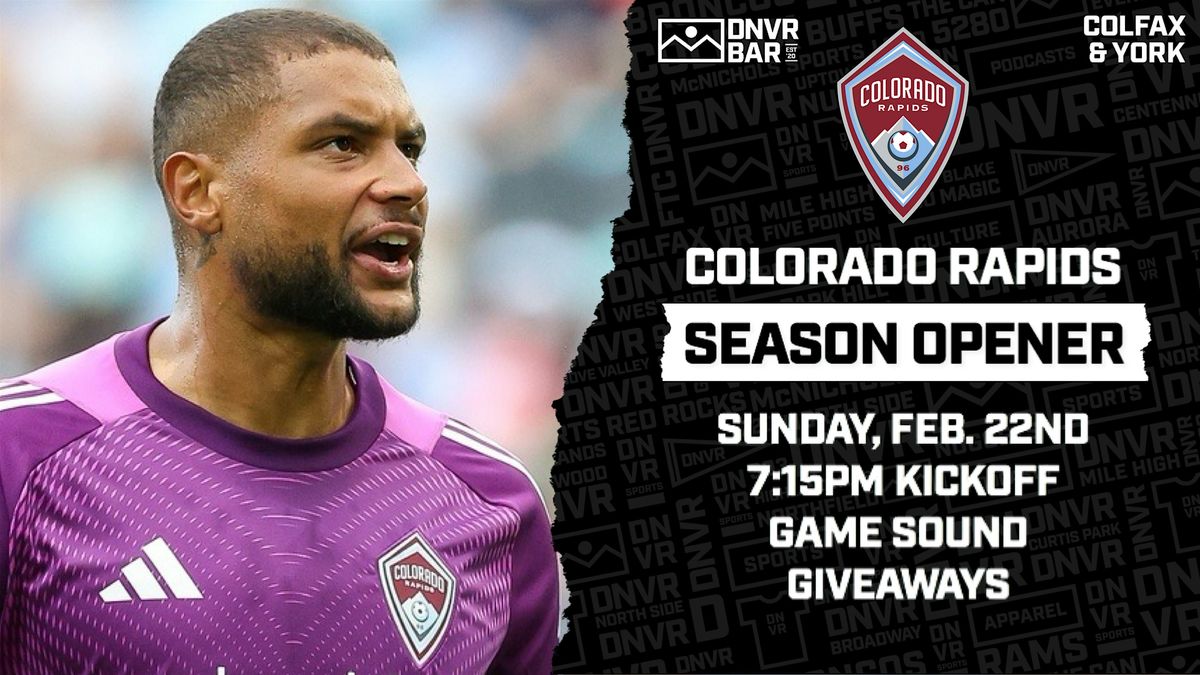 Join us in person at DNVR Bar for an epic watch party for the season opener of YOUR Colorado Rapids! Cheer on your favorite team with fellow diehards, enjoy great vibes, and soak up the game-day excitement. We'll be giving away jerseys, tickets, swag bags, and MORE!