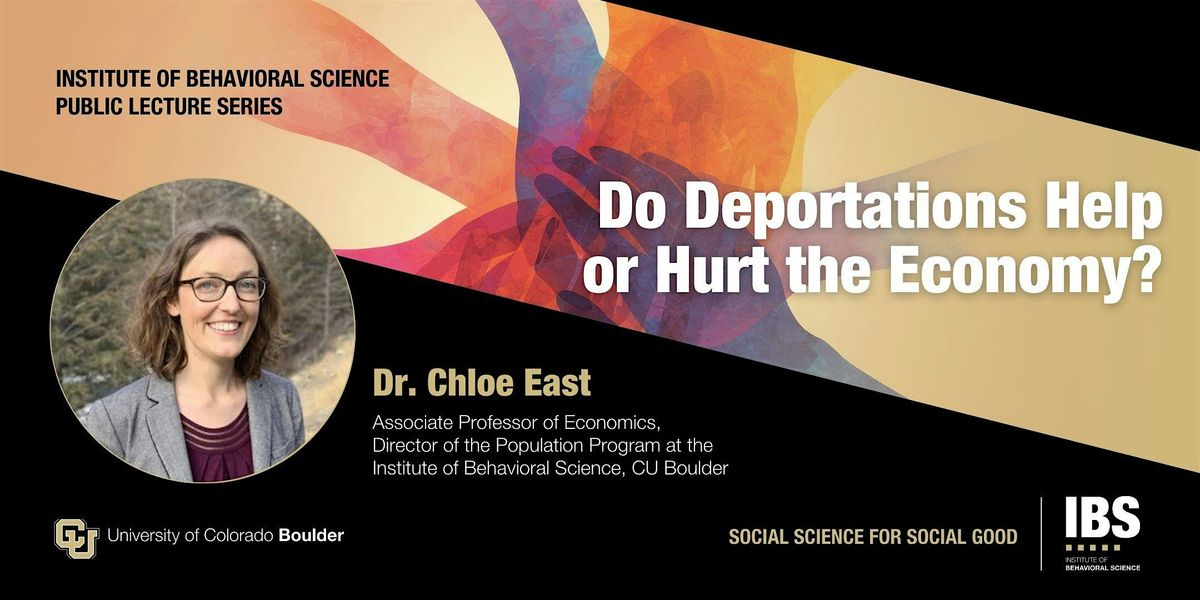 Join us on February 19 for our second Public Lecture Series! Our speaker will be Dr. Chloe East, Associate Professor of Economics and Interim Director of the Population Program at the Institute of Behavioral Science at CU Boulder. Her talk is titled: Do Deportations Help or Hurt the Economy?