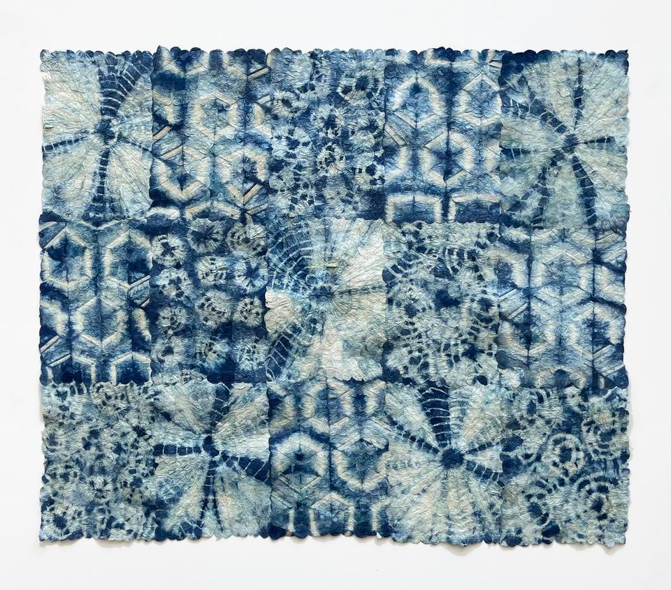 The materials used in creating artworks for “Living Threads” have as much meaning as the pieces themselves. I have been entangled for many years in the cultures, natural materials and co-creations of faraway communities who have had to pivot from utilitarian and ritual use of their materials and techniques to making salable products for a global market. Along the way, a large body of samples and materials have piled up in my studio. During the pandemic, I began to untangle the accumulation and recycle it into artwork. Many hands have touched the raw materials, and I celebrate the living farmers and artisans whose participation has made this work possible. Connections with communities and all living things are represented in this collaborative body of work."