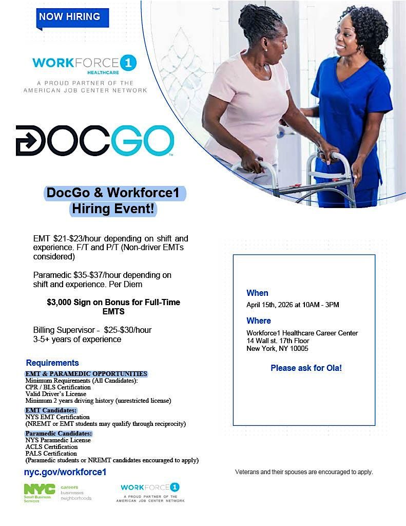 DocGo & Workforce1 Healthcare Hiring Event | EMT, Paramedic & Billing Roles