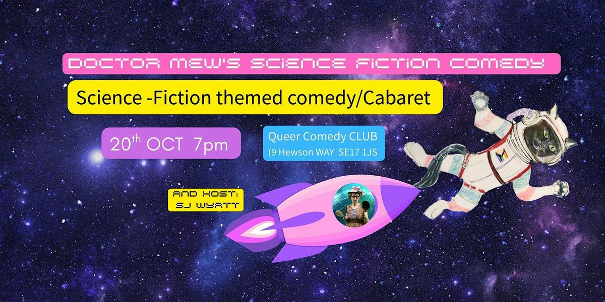 Queer comedians and Cabaret artists share their love of sci fi with audience, share their joy and find out who Doctor Mew the cat who used to be human really is.