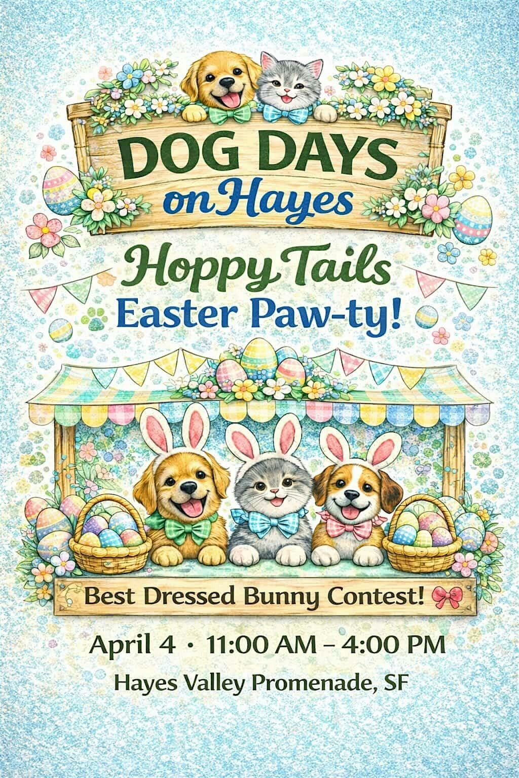 Get ready for a paw-some time at Dog Days on Hayes! Bring your furry friends to the 🐇Hoppy Tails Paw-ty🐇 for a day full of fun, wagging tails, and springtime vibes🌸! It's the perfect chance to mingle with fellow dog lovers, get to know emerging pet brands and artists, and treat your pet to something special! Enjoy a spring-themed photo op 📷, enter our Best Easter Outfit Contest 🐥, and shop these pet-loving brands🛍️:
