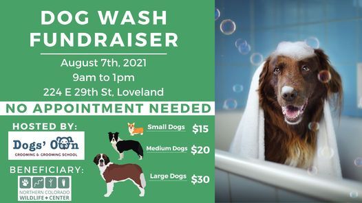 Calling all dog owners! Come get your dog professionally washed on Saturday, August 7th and 100% of the proceeds from each bath will be donated back to Northern Colorado Wildlife Center to support rescue, rehabilitation, and education programs!