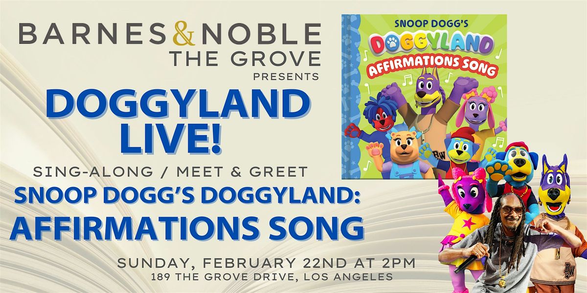 Join on February 22, 2026, at 2:00pm as we welcome the characters from Snoop Dogg's for an interactive storytime, sing-along, and meet and greet! It's time to celebrate the book release of Affirmations Song. Join Doggyland co-creater and the dogs themselves in singing the Affirmation Song and the chance to take a picture with your favorite positive characters. Your ticket comes with a copy of in board book form, so the affirmations follow you home!