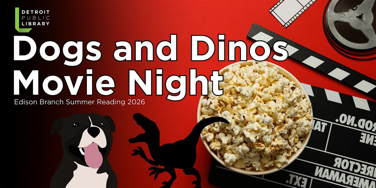 Join loveable adoptable dogs from the Friends of Detroit Animal Care and Control for a snuggly dinosaur themed movie night!