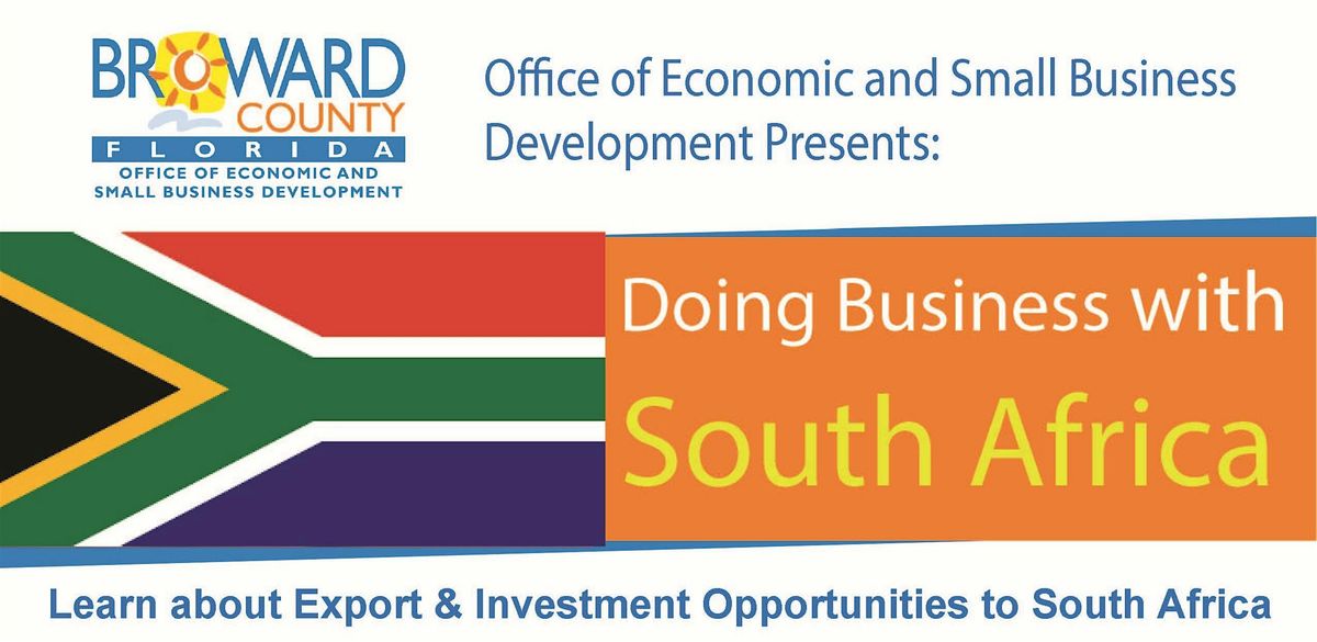 The Broward County Office of Economic and Small Business Development (OESBD) in collaboration with the City of Miramar invite you to attend a special presentation on export and investment opportunities to South Africa. This event will provide attendees with an opportunity to meet and greet with the representative from the Select Florida Office located in South Africa.