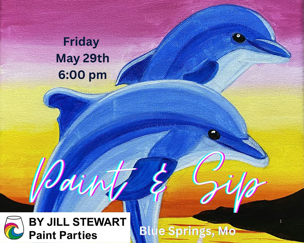 Paint these cute dolphins playing at sunset! All art supplies and instruction are included. I draw the main subject for you. $38/person. Sign up now!