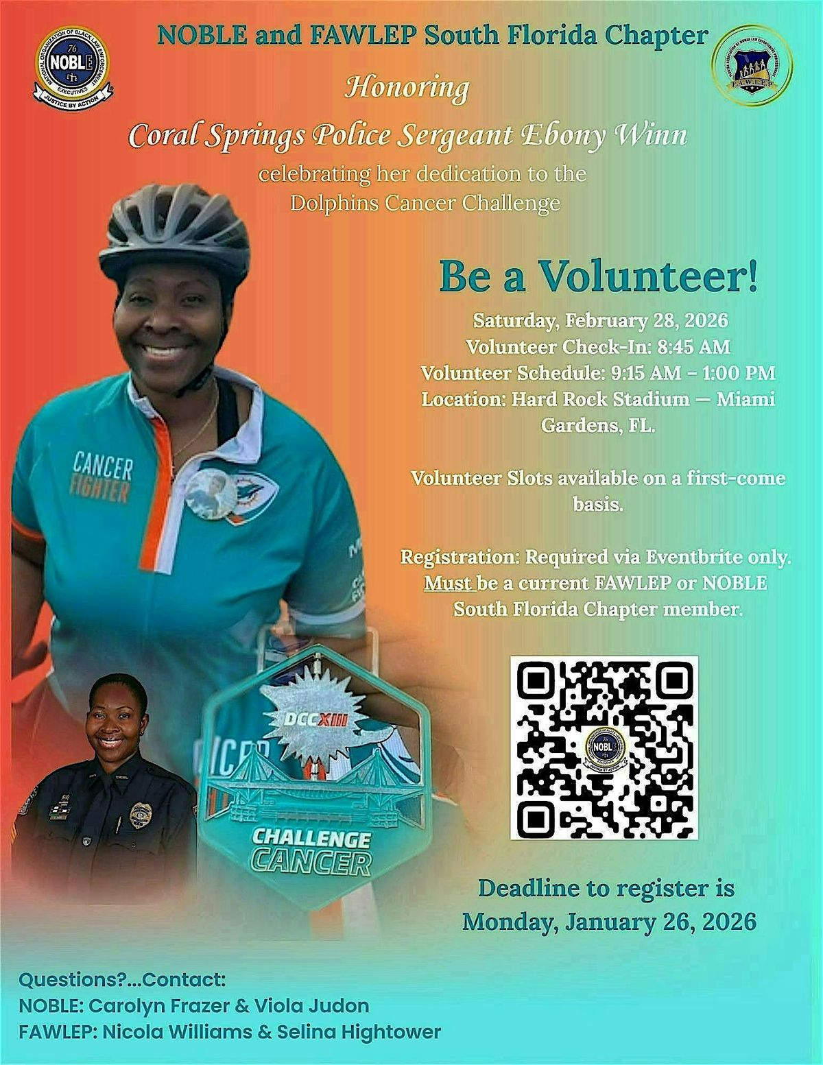 Join NOBLE & FAWLEP for the annual Dolphins Cancer Challenge, now in its 16th year! Ebony poured her heart into the Dolphins Cancer Challenge, serving as a volunteer and as a participant. Both organizations are honored to celebrate her impact and commitment to this great cause.