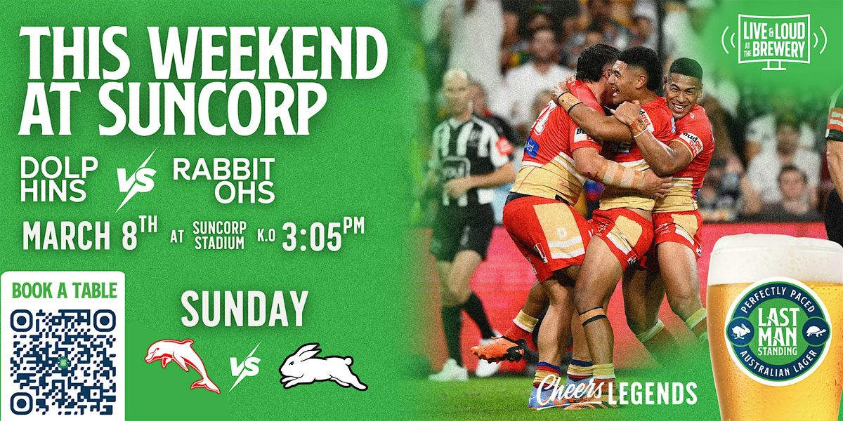Join fellow footy fans for Pre-Game Pints before the Dolphins take on the South Sydney Rabbitohs at Suncorp Stadium.
