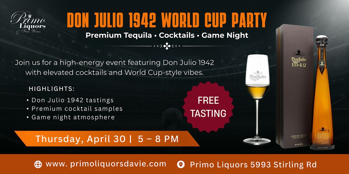 Join us for a high-energy evening featuring the iconic Don Julio 1942 Tequila, expertly crafted cocktails, and a vibrant game-night atmosphere inspired by World Cup vibes.