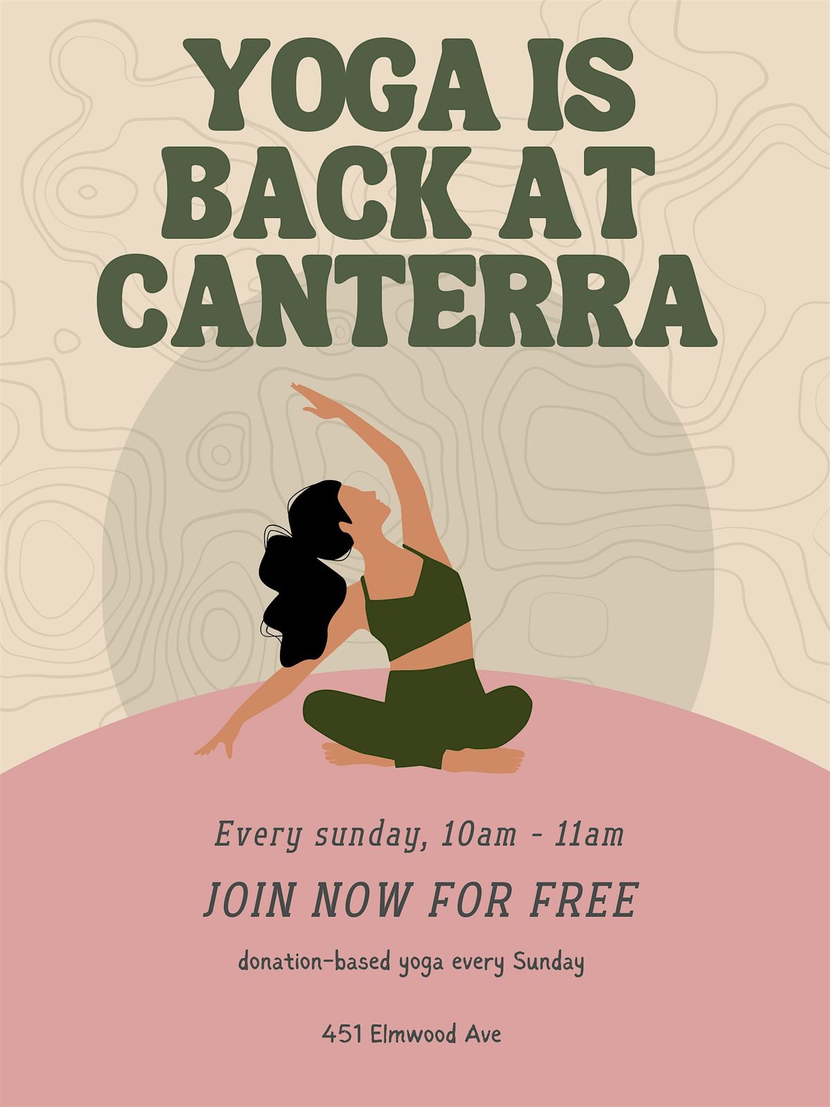 Donation based yoga is BACK every Sunday at Canterra from 10-11AM in the event space. Enjoy a calming way to start your morning and feel energized.