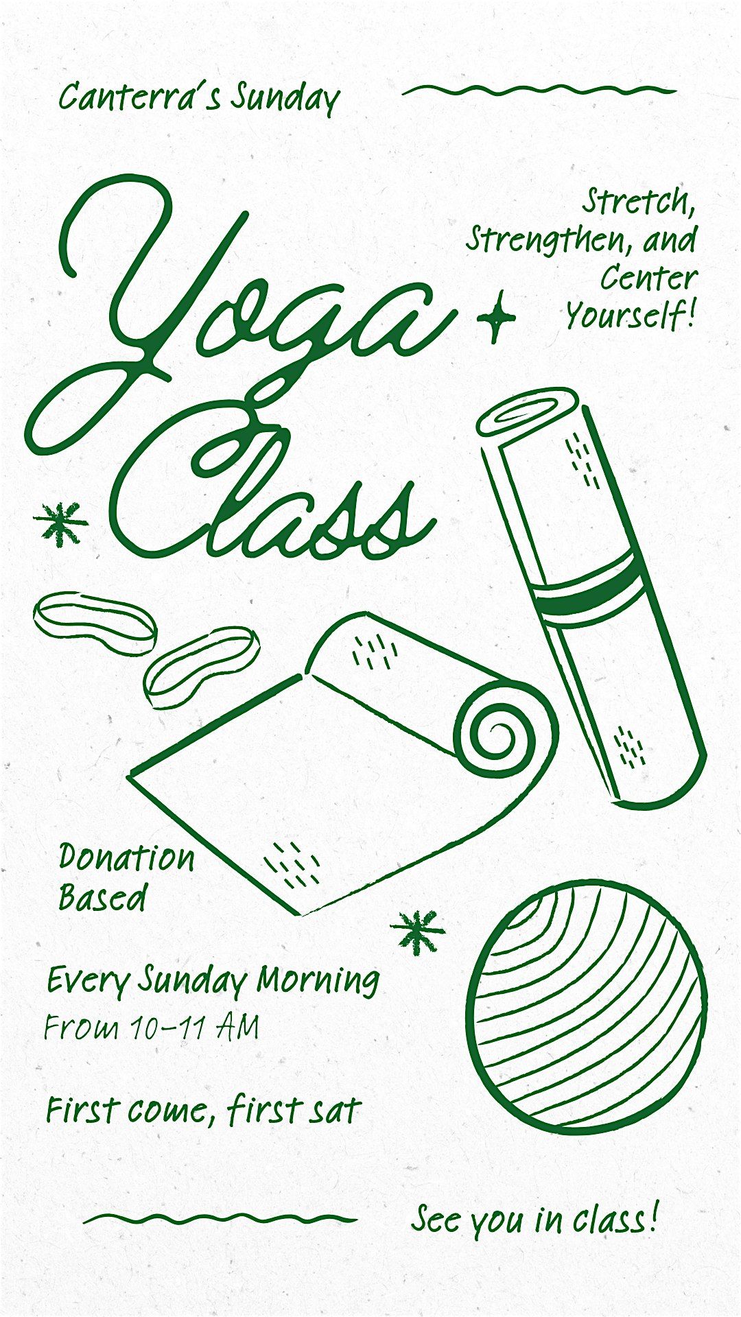 Come find your new regular yoga studio at Canterra every Sunday morning from 10-11 with our donation-based yoga series! Stretch, focus, and get the day started on a positive note.