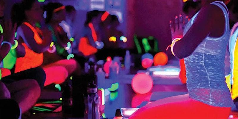 GLOW beneath the blacklight tapestries, glow in the dark wristbands for all yogi's, and wear neon or white!