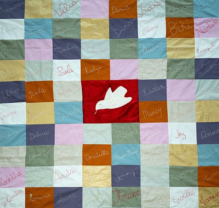 Tra l’ottobre del 1947 e l’ottobre del 1948, L’Udi raccoglie 3 milioni di firme di donne per la pace, contro il riarmo e la bomba atomica. Il 6 novembre del 1948, una delegazione di donne capitanata dall’On. Camilla Ravera, le consegna - rilegate in 150 album - all’Onu a Parigi. Questo il fatto storico al centro del nostro racconto teatrale. Fatto che la Storia - quella con la S maiuscola - ha completamente dimenticato. Come spesso accade ed è accaduto quando si tratta di voci e gesti di donne. Da qui siamo partite per tessere la storia di quelle donne, che mentre raccoglievano firme per la pace cucivano bandiere. Con stoffe di risulta, nastri, scampoli, “comprata a metraggio“ dice Giselle di Fucecchio, una delle protagoniste della nostra storia. Con quello che si riusciva a trovare in quegli anni poveri del primo dopoguerra di già minacciati da venti di guerra. Bandiere colorate, iridate - così le chiamavano allora - con ricamati i loro nomi, a volte anche i cognomi, o solo le iniziali, i simboli dei loro mestieri, con al centro la colomba della pace, “quella di Picasso che ce la portavano le donne dell’Udi” con ricamate a grandi lettere la parola Pace, a volte double face, nomi davanti e scritta Pace sul retro. E insieme alle bandiere portate in innumerevoli manifestazioni per la pace, banchetti, feste, cortei - il più imponente il 14 marzo del ‘48, l’Assise della pace, a Roma - 50 mila donne per dire no alla guerra.