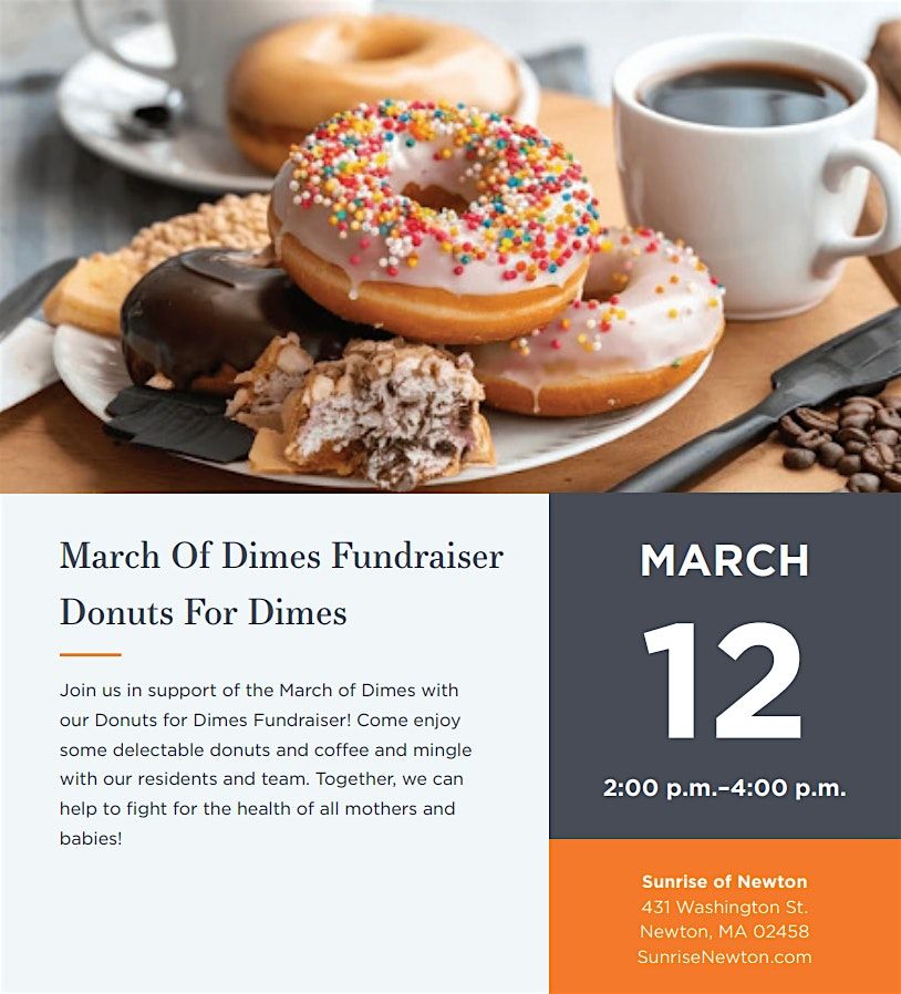 Join us in our Fundraiser for the March of Dimes with our Donuts for Dimes event! Mix, mingle and enjoy some delectable donuts and coffee!