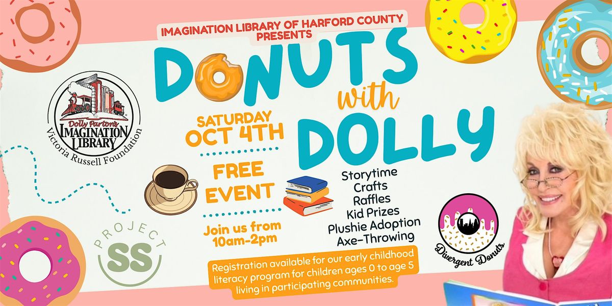 Project Safe Space and the Imagination Library of Harford County are teaming up to bring you Donuts with Dolly — a free family-friendly event at Divergent Donuts! 🍩✨