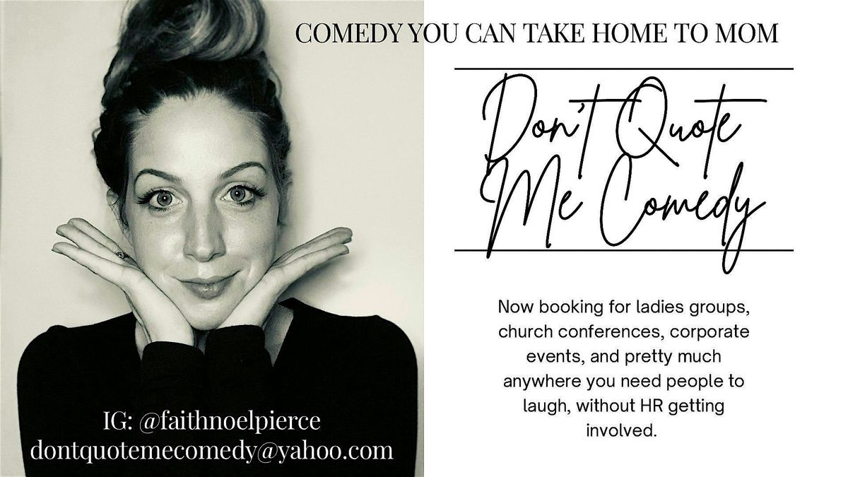 Welcome to Don’t Quote Me - An Evening of Comedy! Get ready for a night filled with laughter at The Peoples Room of Mobile. It's an exclusive event, open only to those who love to laugh and are good at it! Hosting and opening will be Olivia Searcy, a seasoned comedian from Pensacola, Florida, followed by another local talent who will keep the laughs rolling. Headlining will be Mobile native, Faith Pierce. With her cheeky flair for day-to-day, relatable comedy, she'll have you laughing at everything from the quirks of parenthood, to the nightmares of online dating. Save your seat now, tickets won't last!