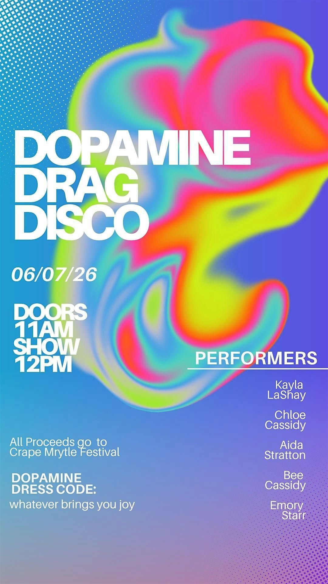 Join us for an unforgettable brunch of glitter, glam, and dance beats at the DOPAMINE DRAG DISCO. This Drag show is sure to boost your dopamine levels sky-high! Here it's all about letting loose, dancing your heart out, and celebrating the start of PRIDE!