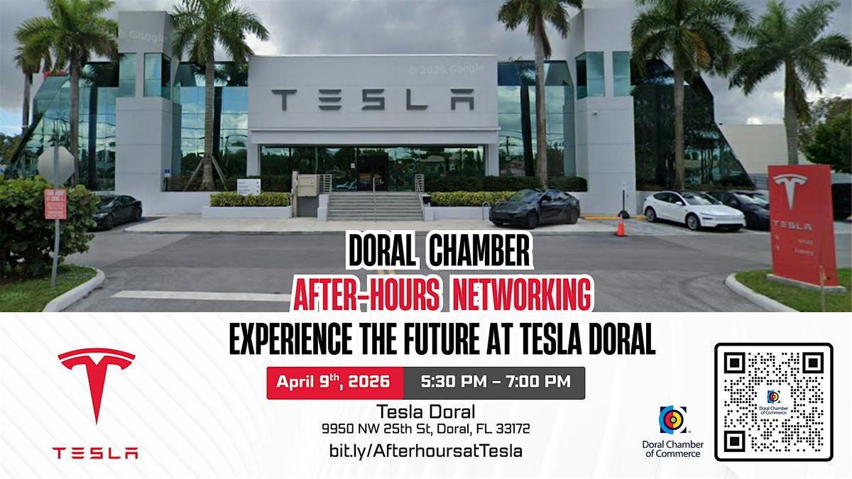 The Doral Chamber of Commerce invites you to a dynamic After-Hours Business Networking Event at Tesla Doral, where innovation, networking, and great conversations come together.