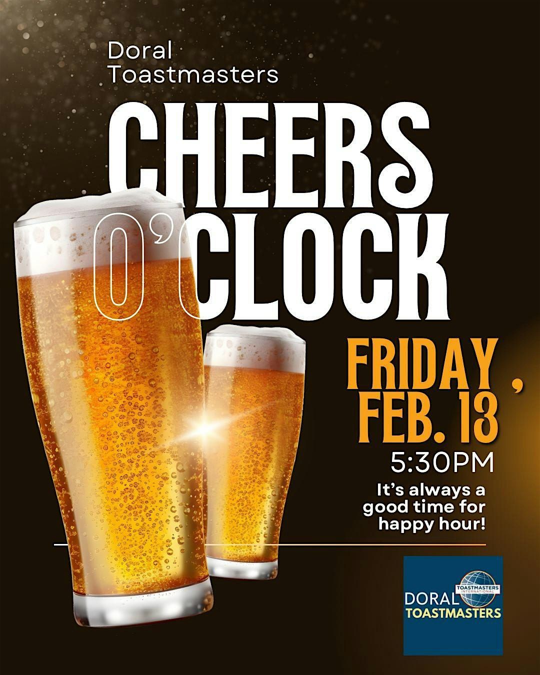 Join us at The Tank on Friday, February 13th at 5:30 PM as Doral Toastmasters hosts a Happy Hour Social! πΉ